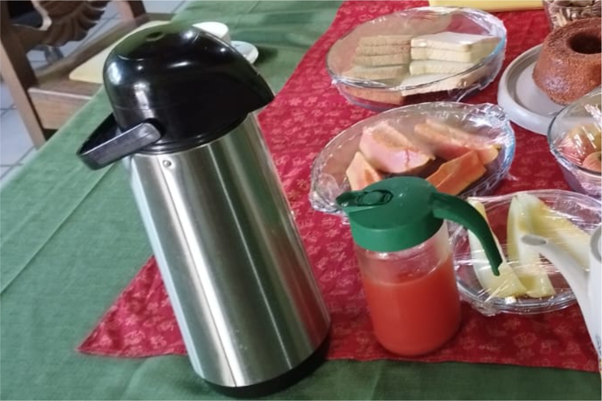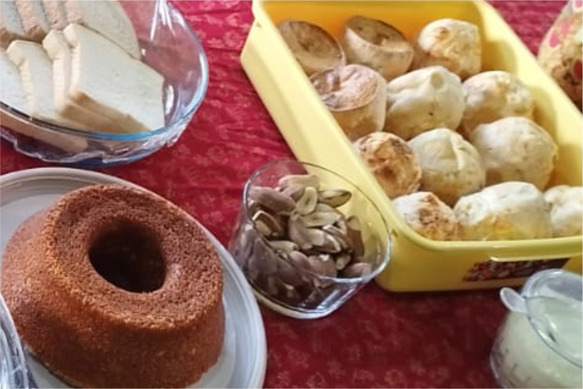 Estamos esperando por você para uma experiência única! Convidamos você a saborear o pão de queijo que conquistou corações e paladares, feito artesanalmente pelo Seu Antônio. Visite nossa fazenda e descubra por que cada mordida é uma viagem ao coração da culinária autêntica!. Na cozinha de Seu Antônio, cada pão de queijo é uma celebração da autenticidade e tradição. O processo artesanal de produção é repleto de cuidado e dedicação, preservando a essência dos pães de queijo caseiros feitos com amor. Ao escolher os melhores ingredientes, Seu Antônio garante que cada pão de queijo seja uma obra-prima culinária. A textura leve e o sabor marcante são resultado de anos de aprimoramento, cuidado e uma pitada generosa do toque pessoal de Seu Antônio. Não aceitamos menos que a perfeição em cada fornada! Sua receita, guardada a sete chaves, é uma mistura única de tradição, carinho e ingredientes de alta qualidade. Cada mordida é uma explosão de sabores, com a crocância perfeita por fora e a maciez irresistível por dentro. O café da manhã é servido no estilo caseiro simples da roça e é acompanhado de leite de gado, castanha do Pará, bolo, suco e frutas, claro sendo observada a disponíbilidade pela safra.