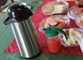 Estamos esperando por você para uma experiência única! Convidamos você a saborear o pão de queijo que conquistou corações e paladares, feito artesanalmente pelo Seu Antônio. Visite nossa fazenda e descubra por que cada mordida é uma viagem ao coração da culinária autêntica!. Na cozinha de Seu Antônio, cada pão de queijo é uma celebração da autenticidade e tradição. O processo artesanal de produção é repleto de cuidado e dedicação, preservando a essência dos pães de queijo caseiros feitos com amor. Ao escolher os melhores ingredientes, Seu Antônio garante que cada pão de queijo seja uma obra-prima culinária. A textura leve e o sabor marcante são resultado de anos de aprimoramento, cuidado e uma pitada generosa do toque pessoal de Seu Antônio. Não aceitamos menos que a perfeição em cada fornada! Sua receita, guardada a sete chaves, é uma mistura única de tradição, carinho e ingredientes de alta qualidade. Cada mordida é uma explosão de sabores, com a crocância perfeita por fora e a maciez irresistível por dentro. O café da manhã é servido no estilo caseiro simples da roça e é acompanhado de leite de gado, castanha do Pará, bolo, suco e frutas, claro sendo observada a disponíbilidade pela safra.